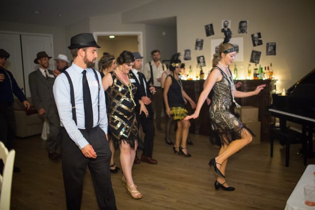 I am a music and dance teacher, so I got to accompany my friend who was playing the lounge singer part and she performed “Dream a Little Dream” for the guests. I also gave a Charleston lesson to the guests. We had a silent Charlie Chaplin movie playing on the TV the entire party for another cool effect.