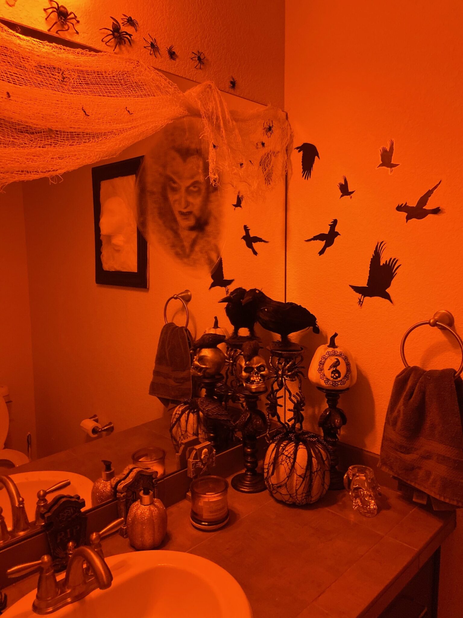 Pro tip: Place small lights under furniture or behind curtains to cast long shadows. A flashlight aimed at a mirror or fogged-up window? Instant ghost story vibes.