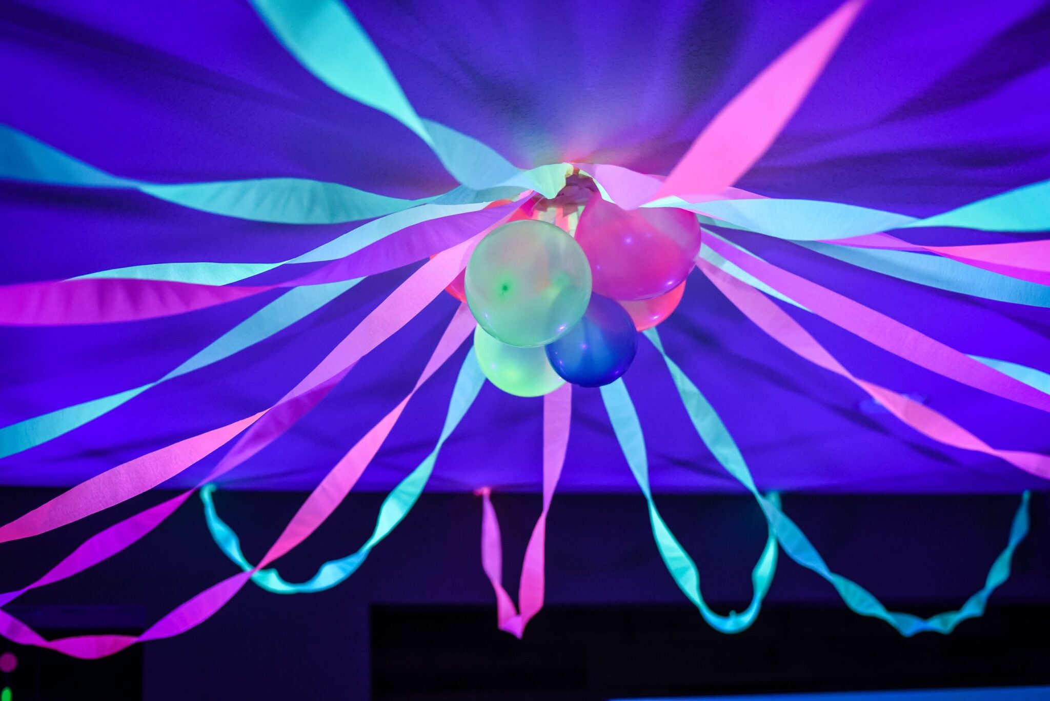 For this neon-drenched throwback party, one host turned a basic basement into an ’80s prom explosion using black lights, dollar-store streamers, and neon cutouts hung from the ceiling. Even the walls became part of the party thanks to reflected UV light. Low effort, high impact—and totally rad. Check out Totally Rad 80s Prom Gone Bad here.