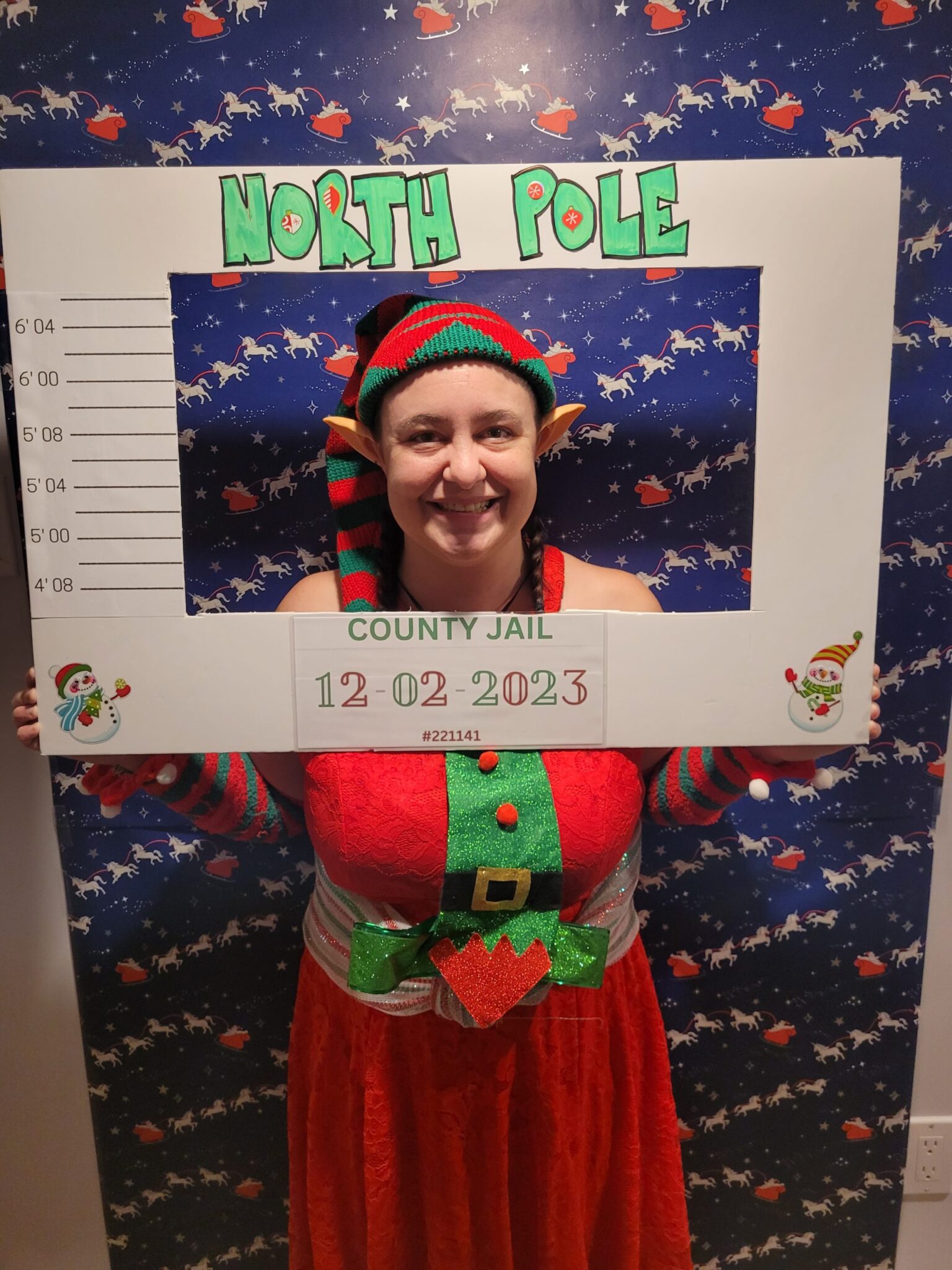 With nothing more than a handmade police lineup, some crime scene tape, a mugshot sign (included with mystery), and a picture of the dearly departed, this host created a photo station worthy of a true crime docuseries for their Murder of a Millionaire party.