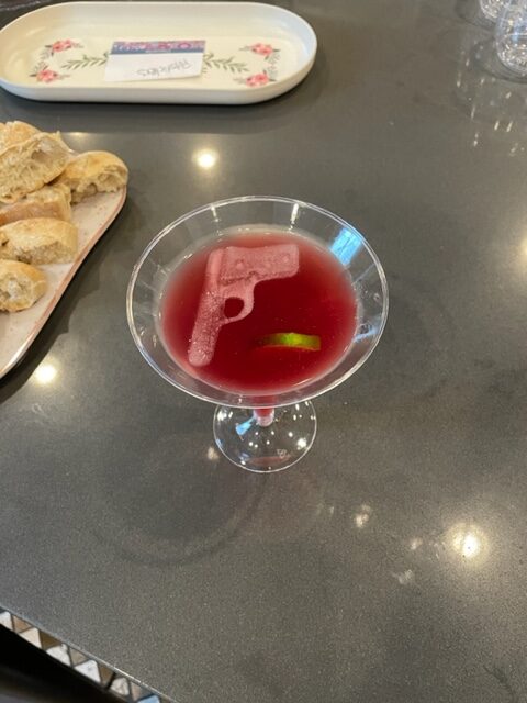 Label your drinks with playful names like Truth Serum, Heartbreaker Punch, or Motive for Murder.