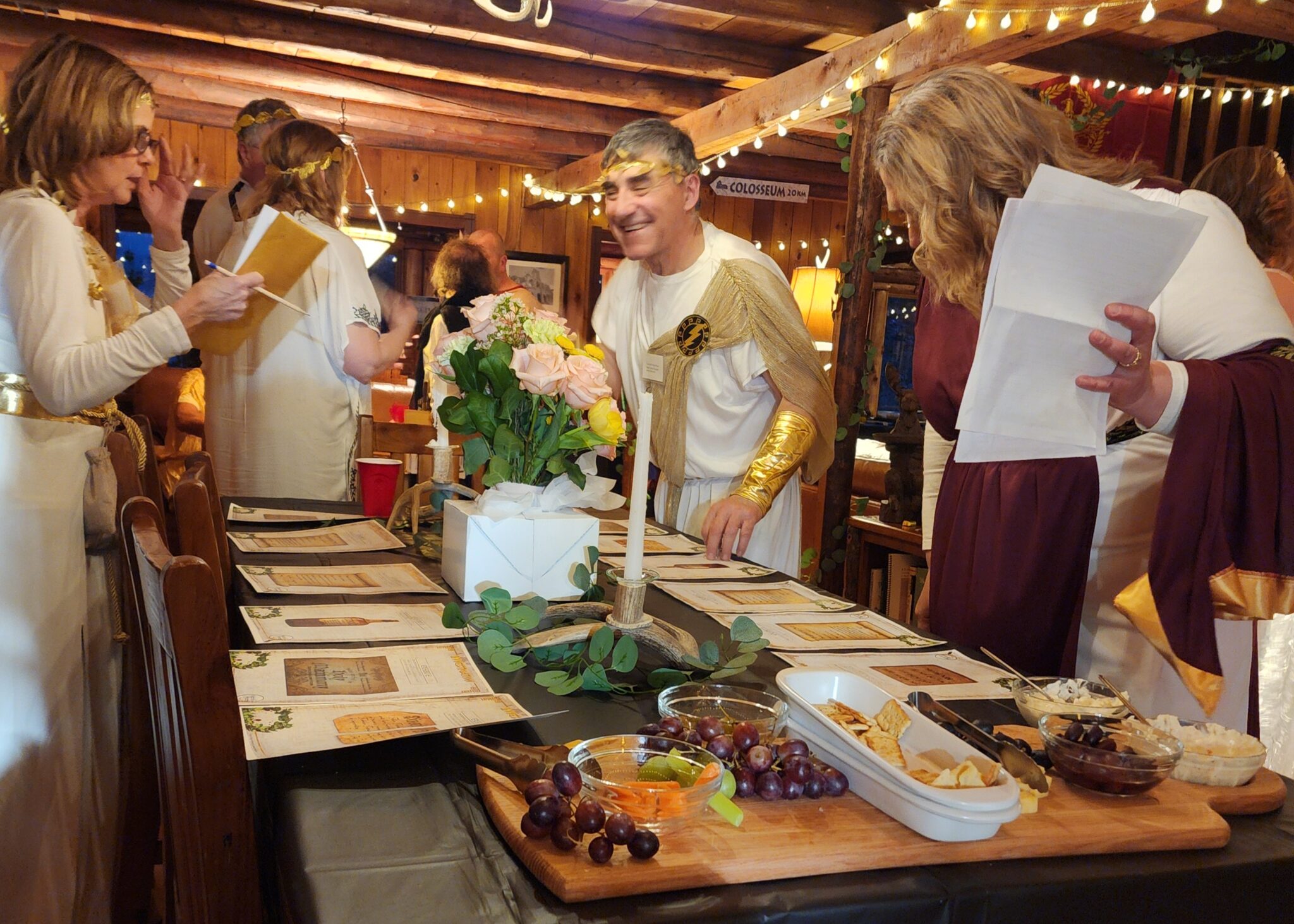 Dinner was served family-style, with Mediterranean-inspired dishes complementing the toga theme.