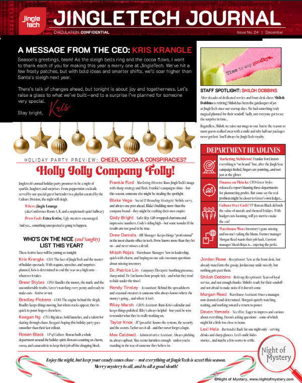 Look no further for the scoop on JingleTech, the holiday party of the year, and all the festive faces (and secrets) behind this corporate celebration!