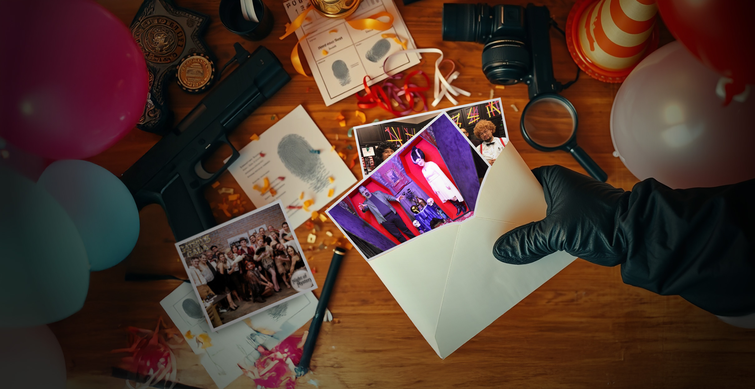 Clues, evidence, and everything to solve the case. - Invites & Decor